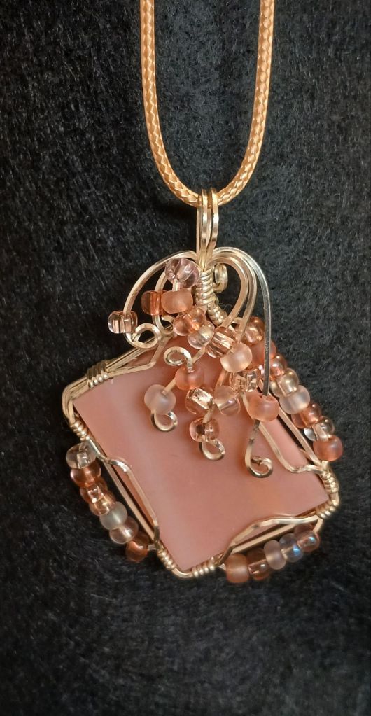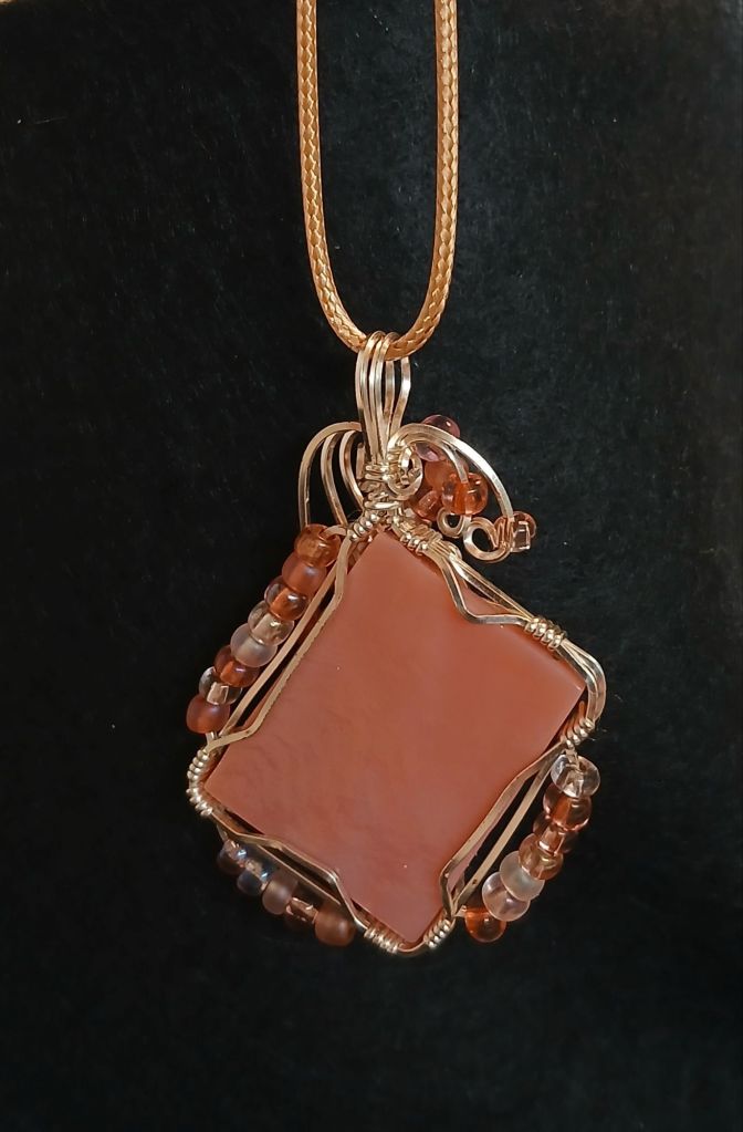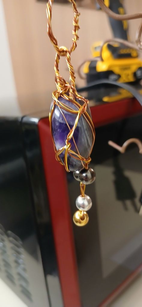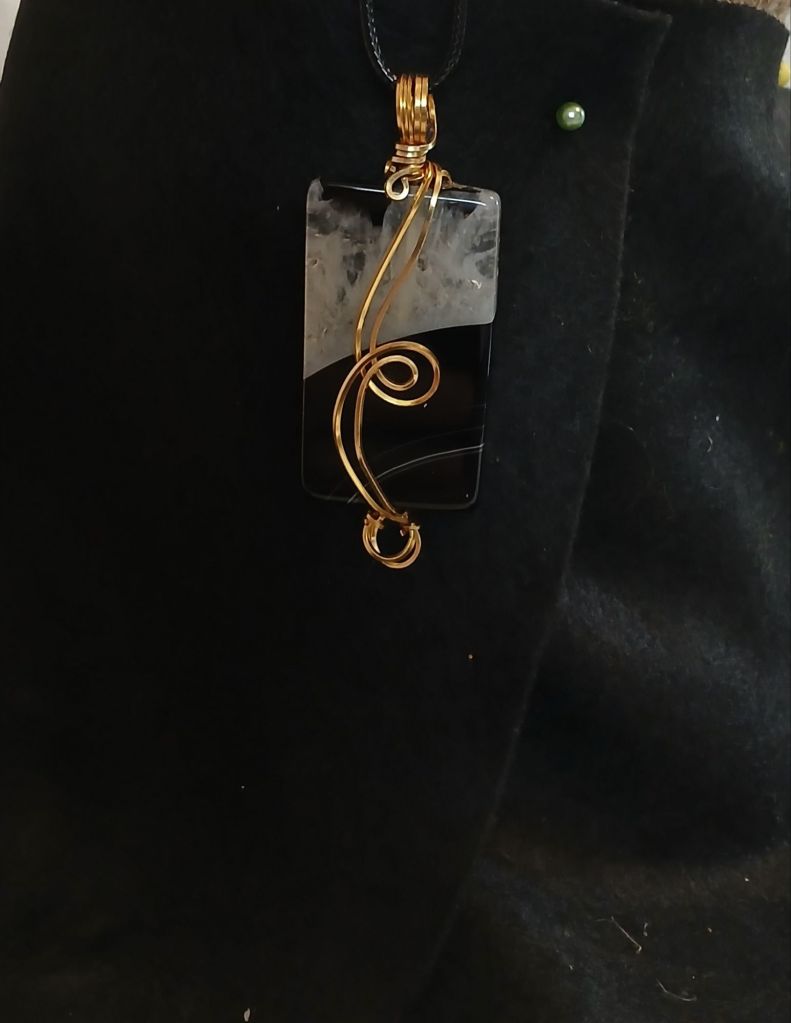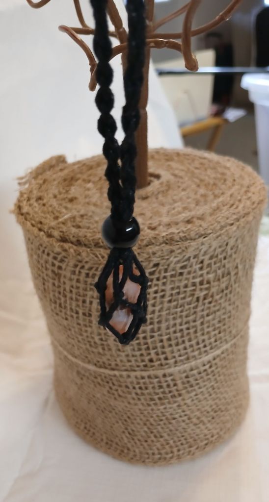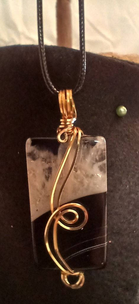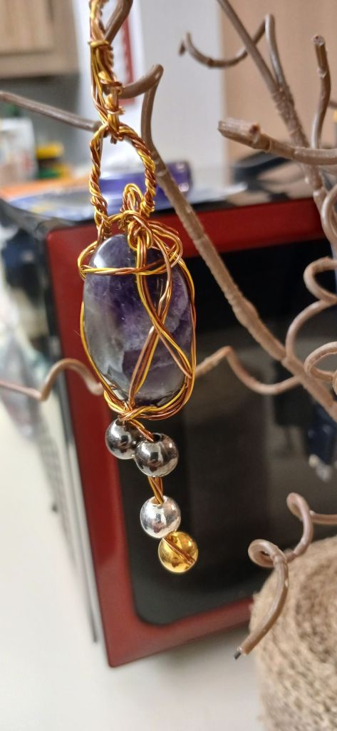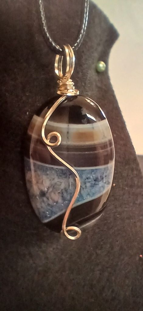 $30.00 – Amesyth wire wrapped stone. Approximately 1″ longing 1/4″ diam.